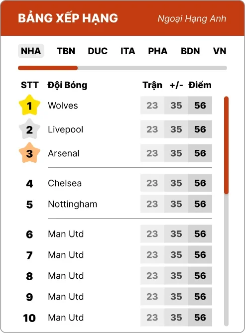 BONGDALU là nền tảng lý tưởng để theo dõi tin tức thể thao nóng hổi, giúp người hâm mộ dễ dàng cập nhật các sự kiện quan trọng, diễn biến trận đấu, thông tin đội bóng, cầu thủ và giải đấu. Trang web cung cấp các số liệu thống kê chi tiết, bao gồm kết quả, điểm số, bảng xếp hạng, phân tích chuyên sâu, bạn có cái nhìn toàn diện về từng trận đấu. BONGDALU mang đến tin tức thể thao chính xác, nhanh chóng từ các giải đấu lớn trên toàn cầu. Người dùng có thể dễ dàng theo dõi kết quả theo thời gian thực, nhận định chuyên gia và phân tích chiến thuật, theo dõi thể thao trở nên sống động, đầy đủ hơn bao giờ hết.
